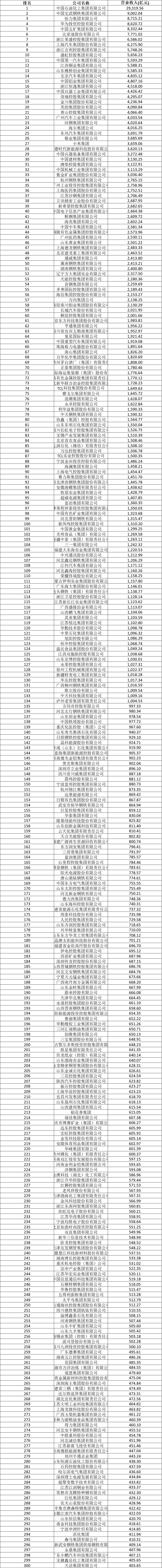 其中,河南省共22家企业上榜:洛阳栾川钼业集团股份有限公司(58名)、牧原实业集团有限公司(94名)、河南豫光金铅(600531)集团有限责任公司(145名)、伊电控股集团有限公司(182名)、河南双汇投资发展股份有限公司(222名)、河南金利金铅集团有限公司(223名)、河南钢铁集团有限公司(253名)、济源市万洋冶炼(集团)有限公司(262名)、河南豫联能源集团有限责任公司(278名)、郑州宇通企业集团(279名)、超聚变数字技术有限公司(284名)、河南神火集团有限公司(306名)、郑州煤矿机械集团股份有限公司(325名)、河南龙成集团有限公司(351名)、河南明泰铝业(601677)股份有限公司(358名)、河南济源钢铁(集团)有限公司(374名)、卫华集团有限公司(379名)、河南丰利石化有限公司(385名)、龙佰集团(002601)股份有限公司(388名)、河南心连心化学工业集团股份有限公司(421名)、河南中孚实业(600595)股份有限公司(433名)、河南利源集团燃气有限公司(468名)。